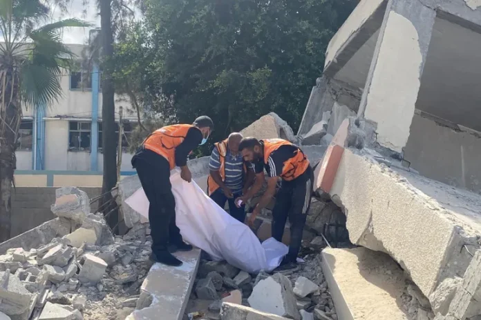 Sementara di wilayah tengah Jalur Gaza, tim Pertahanan Sipil berhasil mengevakuasi jenazah seorang korban dari bawah reruntuhan di dekat Sekolah Al-‘Urubah di Kamp Pengungsi Nuseirat.