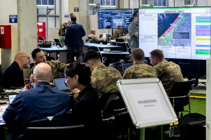 Didirikan pada 17 Oktober lalu—5 hari setelah para pemimpin dunia menyetujui rencana perdamaian yang dimediasi AS—pusat koordinasi tersebut mulai beroperasi penuh pada 24 Oktober setelah para staf internasional tiba di markasnya di Kota Kiryat Gat, Israel selatan.