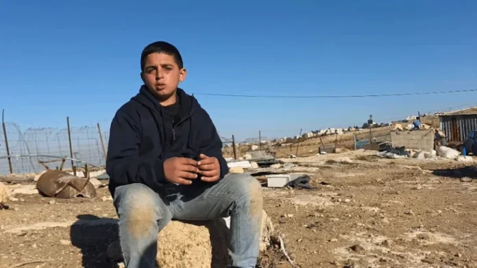Seorang anak Palestina bernama Mahmoud Hamamda menuturkan pengalamannya menghadapi langsung seorang pemukim Israel di tanah milik keluarganya, di wilayah selatan Hebron, Tepi Barat.