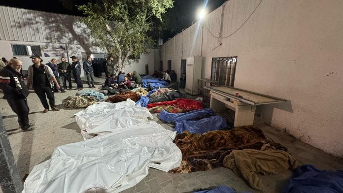 HomeBeritaFoto Gazamedia: Jasad warga Gaza yang gugur akibat serangan terbaru Israel menumpuk... BeritaPalestinaHeadline Foto Gazamedia: Jasad warga Gaza yang gugur akibat serangan terbaru Israel menumpuk di RS Al-Shifa By Pizaro Idrus 18/03/2025 0 845 Sejumlah besar syuhada tiba di Kompleks Medis Al-Shifa akibat pemboman yang dilakukan Israel di Kota Gaza pada Selasa (18/3). (Mohammad al Mashri/Gazamedia.net) TagsGazaGenosida Share FacebookTwitterWhatsAppTelegram Previous articleDubes Israel: Serangan ke Gaza akan terus dilancarkan sampai semua sandera bebasNext articleMedia Israel: Netanyahu serang Gaza karena Hamas tolak bebaskan sandera AS Pizaro IdrusKandidat PhD bidang Hubungan Internasional Universitas Sains Malaysia. Peneliti Asia Middle East Center for Research and Dialogue ARTIKEL TERKAIT Berita Benarkah GSF membantu nelayan Gaza kembali ke laut? 07/10/2025 Berita Aktivis GSF: Kami diperlakukan secara brutal oleh Israel 07/10/2025 Berita Dalam 2 tahun genosida, Israel hancurkan warisan sejarah Gaza 07/10/2025 - Advertisment - Terpopuler Benarkah GSF membantu nelayan Gaza kembali ke laut? 07/10/2025 Aktivis GSF: Kami diperlakukan secara brutal oleh Israel 07/10/2025 Dalam 2 tahun genosida, Israel hancurkan warisan sejarah Gaza 07/10/2025 Perundingan tidak langsung soal Gaza dimulai di Mesir 07/10/2025 Load more