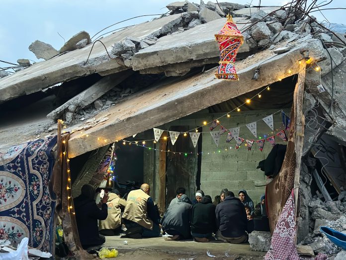 HomeBeritaFOTO: Suasana berbuka puasa keluarga Gaza di tengah reruntuhan rumah BeritaPalestinaHeadline FOTO: Suasana berbuka puasa keluarga Gaza di tengah reruntuhan rumah By Pizaro Idrus 09/03/2025 0 985 Keluarga Palestina berbuka puasa di reruntuhan rumah yang hancur di Kota Bait Lahiya, kawasan utara Jalur Gaza pada 7 Maret 2025. (Foto: Gazamedia) Tagsbuka puasaGazaPalestina Share FacebookTwitterWhatsAppTelegram Previous articleIsrael akhirnya kirim delegasi ke Doha bahas gencatan senjata GazaNext articleInggris, Prancis, Italia, Jerman sambut baik rencana Liga Arab bangun Gaza Pizaro IdrusKandidat PhD bidang Hubungan Internasional Universitas Sains Malaysia. Peneliti Asia Middle East Center for Research and Dialogue ARTIKEL TERKAIT Berita Apakah Israel mempertahankan milisi bersenjata di Gaza? 08/10/2025 Berita Israel Serbu kapal Freedom Flotilla ke Gaza di perairan internasional 08/10/2025 Berita Setelah 2 tahun Taufan Al-Aqsha, Gaza mengubah dunia 08/10/2025 - Advertisment - Terpopuler Apakah Israel mempertahankan milisi bersenjata di Gaza? 08/10/2025 Israel Serbu kapal Freedom Flotilla ke Gaza di perairan internasional 08/10/2025 Setelah 2 tahun Taufan Al-Aqsha, Gaza mengubah dunia 08/10/2025 El PaÃs: Kesepakatan yang dirancang untuk menyenangkan semua orang, kecuali Palestina 08/10/2025 Load more