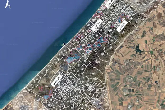 Hasil analisis menunjukkan, peta itu sebenarnya hanya mencakup 38 bidang lahan: 8 di Khan Younis dan 30 di Deir al-Balah, dengan total luas tak lebih dari 7 kilometer persegi.