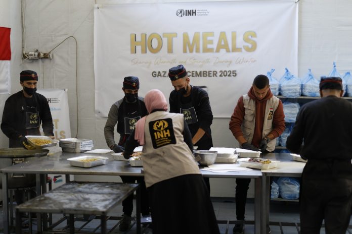 INH menegaskan komitmennya untuk terus menjalankan program bantuan darurat, termasuk penyediaan makanan siap santap, selama krisis kemanusiaan di Jalur Gaza masih berlangsung. Setiap bulanya lembaga kemanusiaan ini menyalurkan bantuan untuk warga Gaza seperti bantuan air bersih, paket makanan dan bantuan musim dingin.