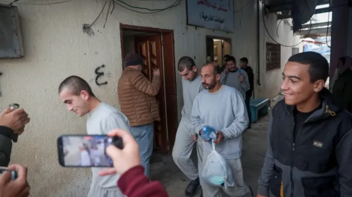 Sebelumnya, mereka ditahan di penjara-penjara Israel dari perlintasan Kerem Shalom menuju Rumah Sakit Syuhada Al-Aqsha di Jalur Gaza.