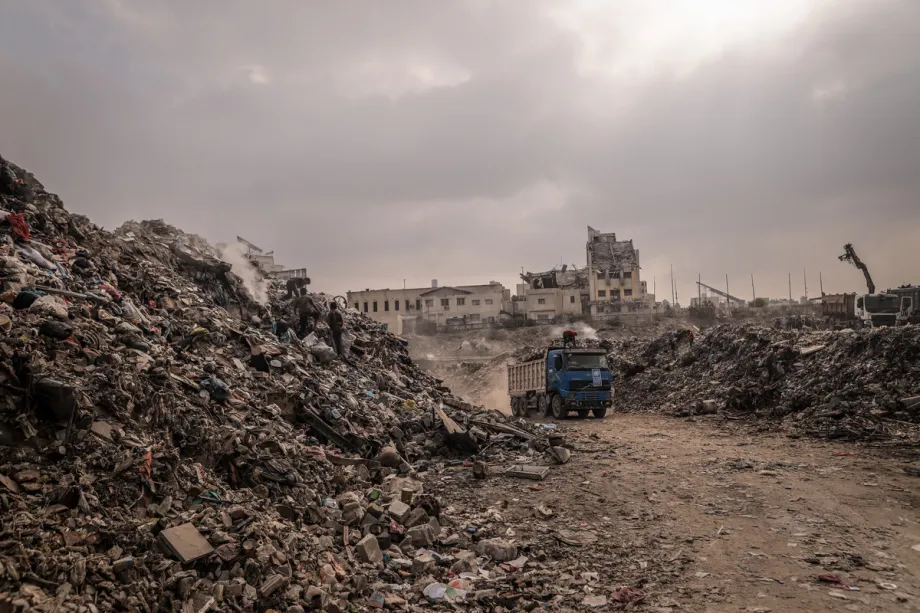 Kantor Media Gaza memperkirakan bahwa serangan tersebut telah meninggalkan sekitar 70 juta ton puing-puing, di bawahnya terkubur ribuan jasad warga Palestina yang tewas selama perang.