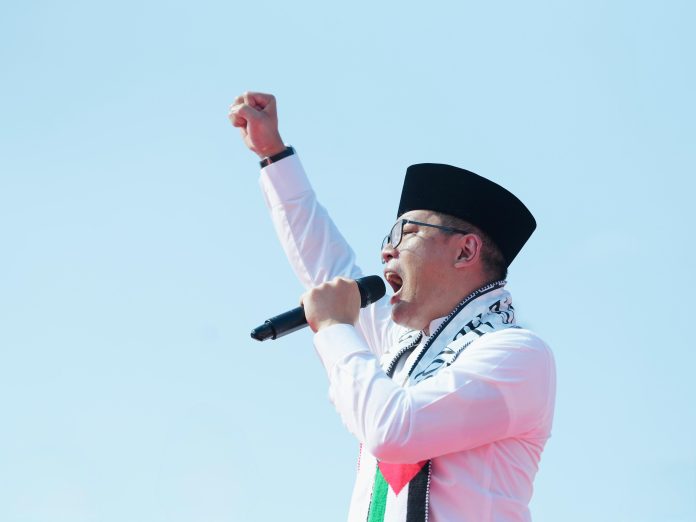 Di hadapan ribuan peserta dari berbagai kalangan, Menlu Sugiono menyampaikan bahwa perjuangan kemerdekaan Palestina merupakan bagian dari amanah konstitusi dan komitmen nyata Pemerintahan Presiden Prabowo Subianto.