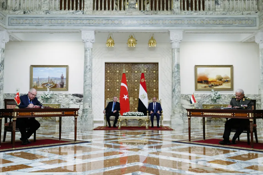 Mesir dan Turkiye menandatangani perjanjian kerja sama militer di Kairo pada Rabu, dengan disaksikan Presiden Mesir Abdel Fattah al-Sisi dan Presiden Turkiye Recep Tayyip Erdogan.