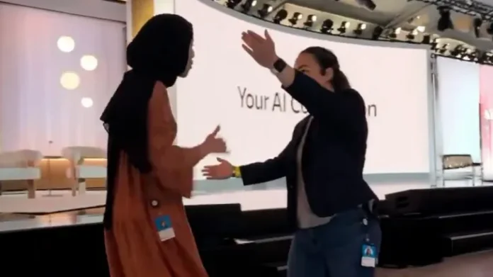 Pegawai Microsoft asal Maroko bernama Ibtihal Abu Saad berdiri dan berteriak saat Suleyman sedang berbicara.