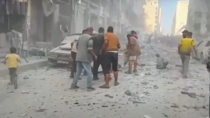Serangan udara Israel kembali menghantam wilayah padat penduduk di Kota Gaza, Sabtu (30/8).