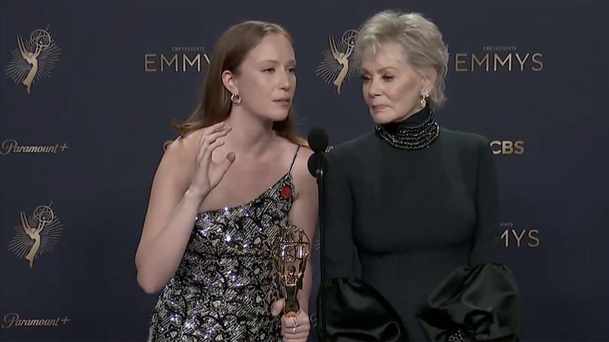 Aktris serial komedi “Hacks,” Hannah Einbinder, yang meraih penghargaan aktris pendukung terbaik, menutup pidato kemenangannya dengan seruan: “Go Birds, F— ICE and Free Palestine.”