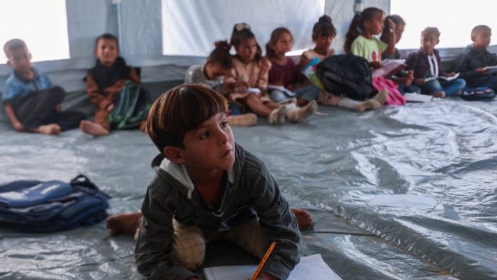 HomeBeritaTak ada buku, tak ada bangunan kelas—anak Gaza tetap datang ke sekolah